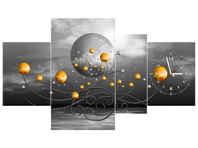 Úvod » Obrazy » Obrazy s hodinami » Obraz na stenu do obývačky - Oranžové gule na sivo pozadí