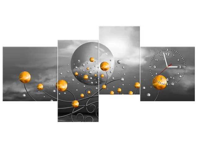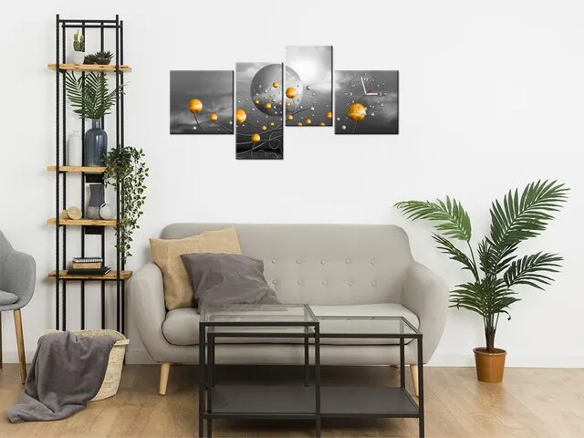 Úvod » Obrazy » Obrazy s hodinami » Obraz na stenu do obývačky - Oranžové gule na sivo pozadí