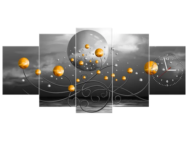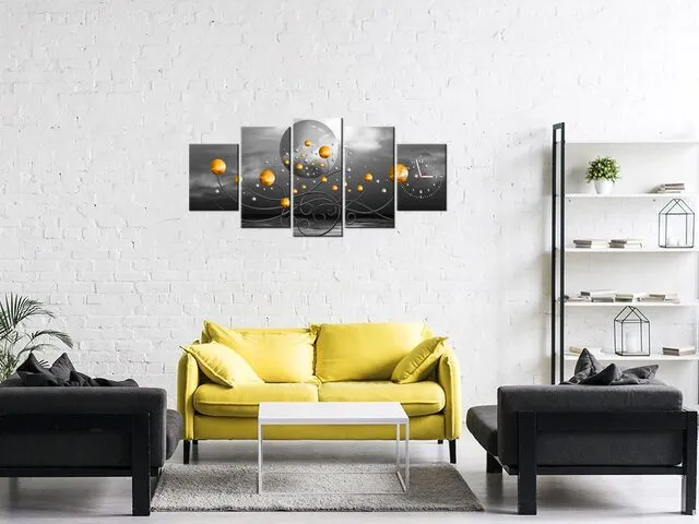 Úvod » Obrazy » Obrazy s hodinami » Obraz na stenu do obývačky - Oranžové gule na sivo pozadí