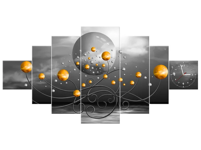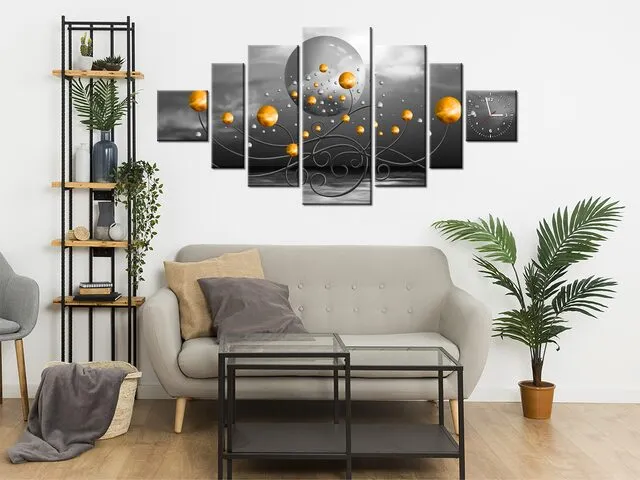 Úvod » Obrazy » Obrazy s hodinami » Obraz na stenu do obývačky - Oranžové gule na sivo pozadí