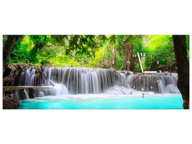Úvod » Obrazy » Obrazy s hodinami » Obraz na stenu s hodinami Azúrový vodopád