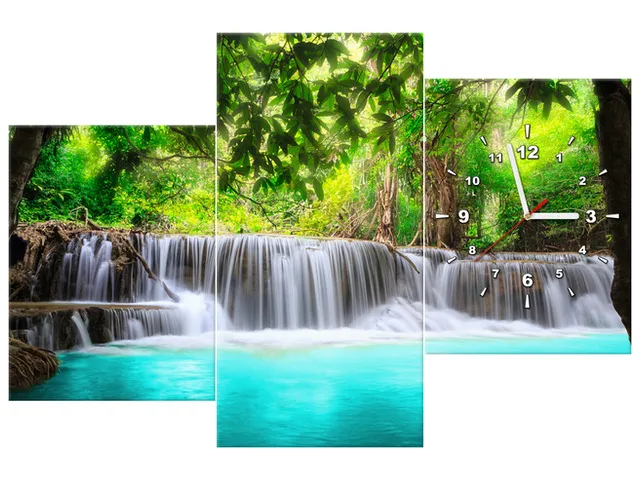 Úvod » Obrazy » Obrazy s hodinami » Obraz na stenu s hodinami Azúrový vodopád