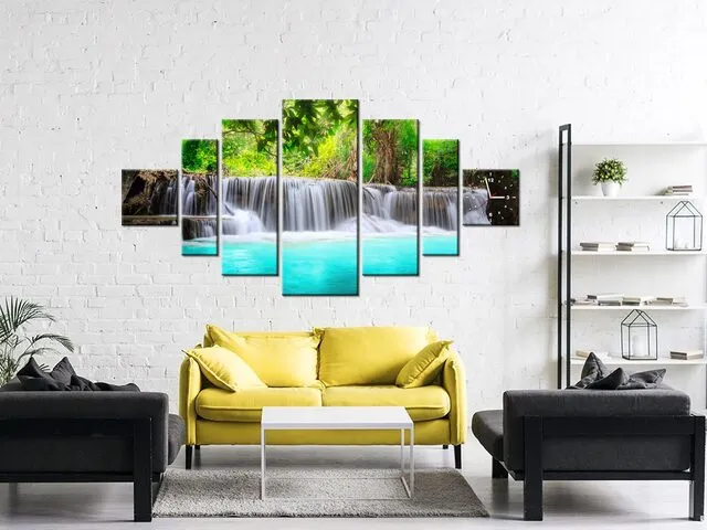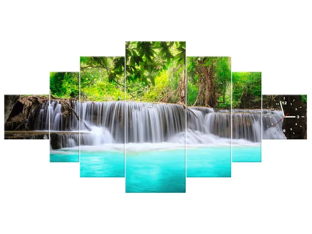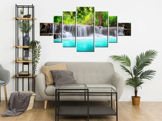Úvod » Obrazy » Obrazy s hodinami » Obraz na stenu s hodinami Azúrový vodopád