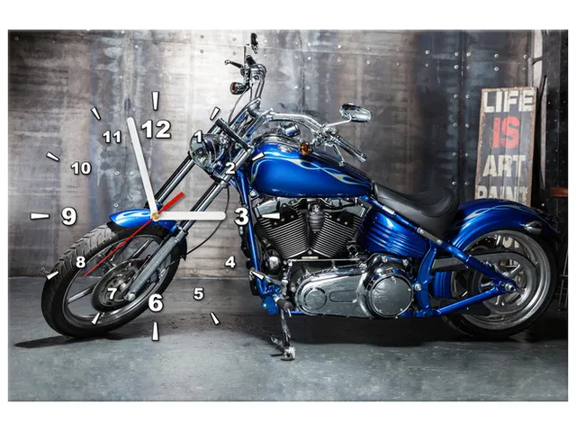 Úvod » Obrazy » Obrazy s hodinami » Obraz na stenu s hodinami Chromovaný motocykel