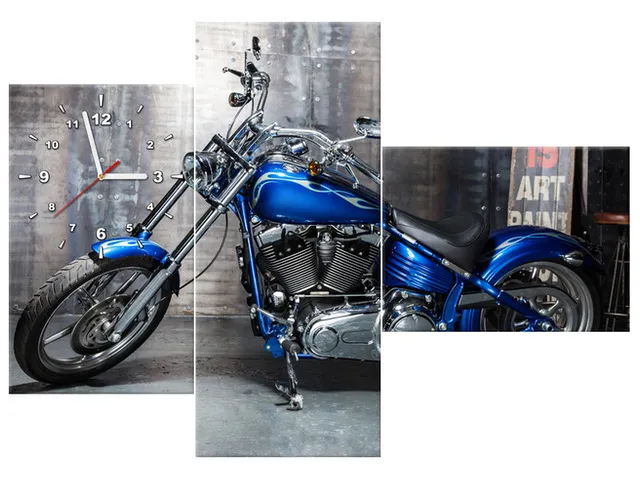 Úvod » Obrazy » Obrazy s hodinami » Obraz na stenu s hodinami Chromovaný motocykel