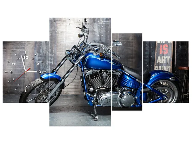 Úvod » Obrazy » Obrazy s hodinami » Obraz na stenu s hodinami Chromovaný motocykel