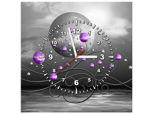 ZP5588A_3AW Obraz na stenu s hodinami Fialové gule na sivom pozadí |