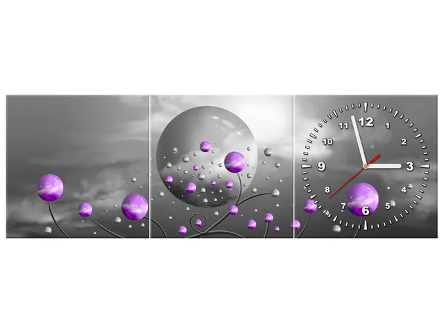 ZP5588A_3AW Obraz na stenu s hodinami Fialové gule na sivom pozadí |
