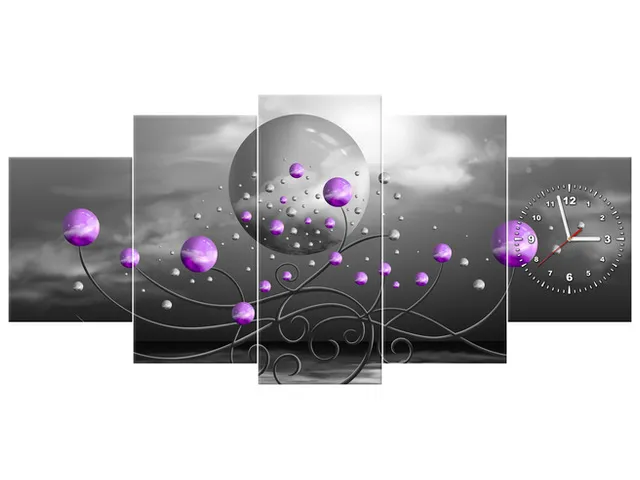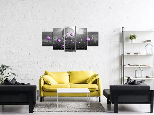 ZP5588A_3AW Obraz na stenu s hodinami Fialové gule na sivom pozadí |