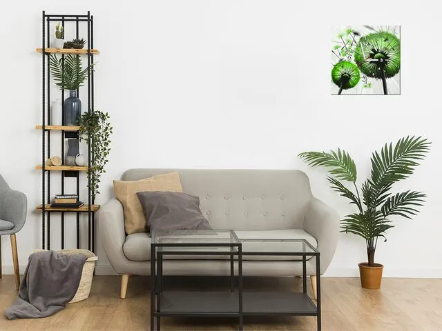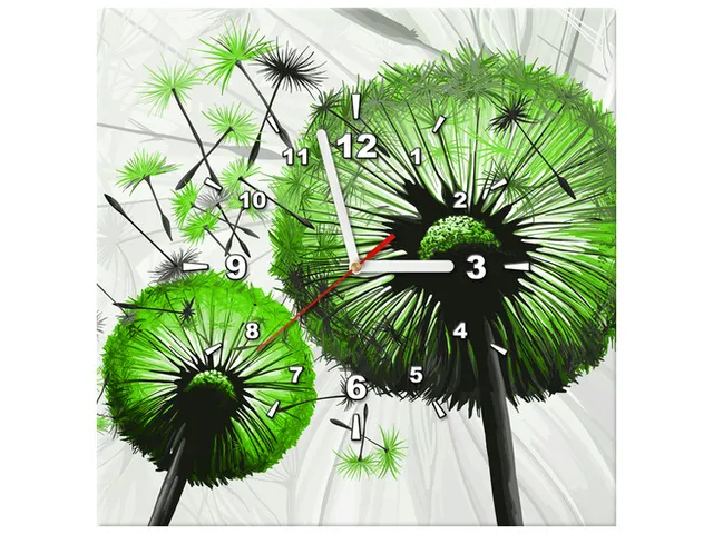 Úvod » Obrazy » Obrazy s hodinami » Obraz na stenu s hodinami Limetkové púpavy