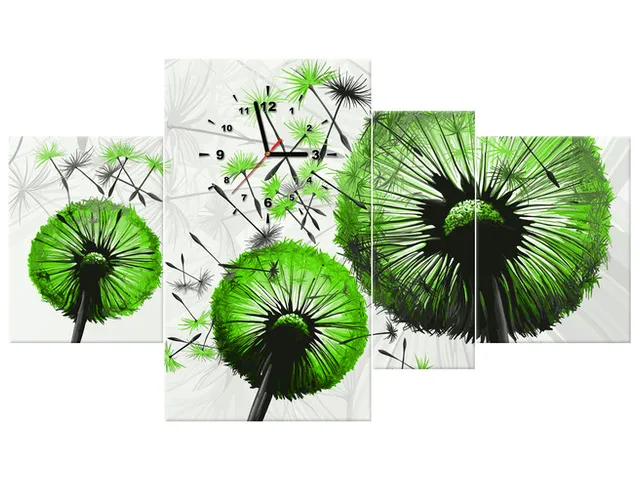 Úvod » Obrazy » Obrazy s hodinami » Obraz na stenu s hodinami Limetkové púpavy