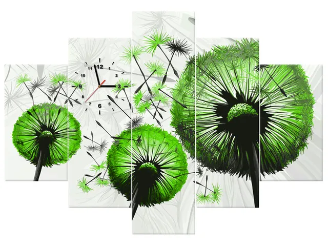 Úvod » Obrazy » Obrazy s hodinami » Obraz na stenu s hodinami Limetkové púpavy