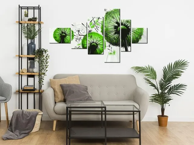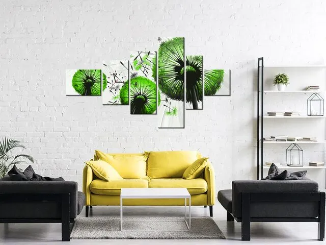 Úvod » Obrazy » Obrazy s hodinami » Obraz na stenu s hodinami Limetkové púpavy