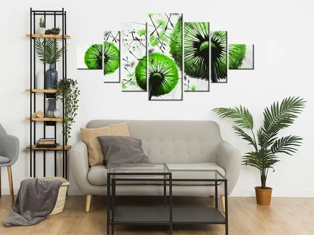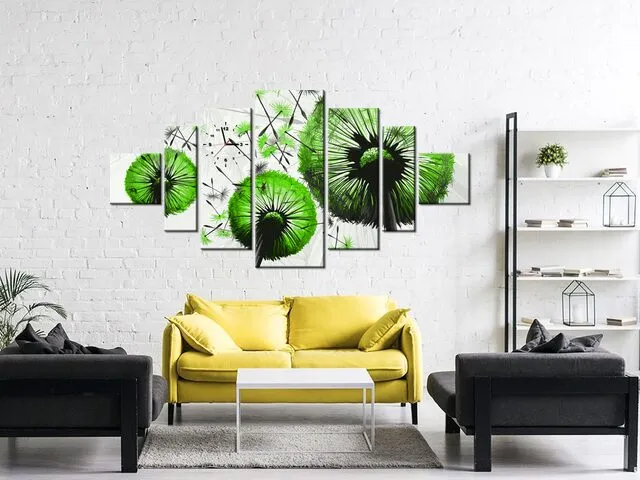 Úvod » Obrazy » Obrazy s hodinami » Obraz na stenu s hodinami Limetkové púpavy