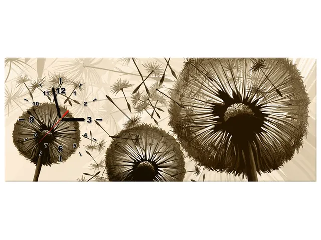 Úvod » Obrazy » Obrazy s hodinami » Obraz na stenu s hodinami Púpavy v béžovej