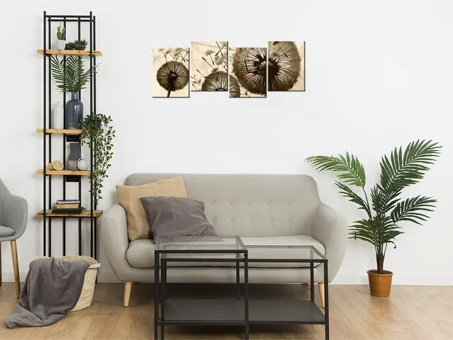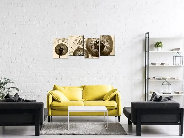 Úvod » Obrazy » Obrazy s hodinami » Obraz na stenu s hodinami Púpavy v béžovej
