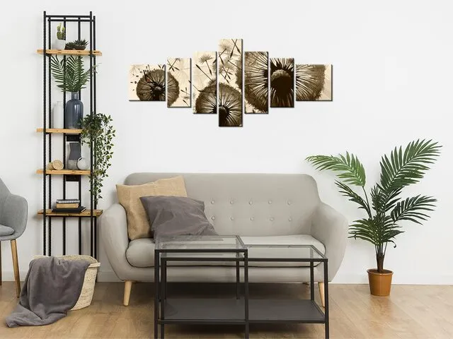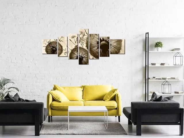 Úvod » Obrazy » Obrazy s hodinami » Obraz na stenu s hodinami Púpavy v béžovej