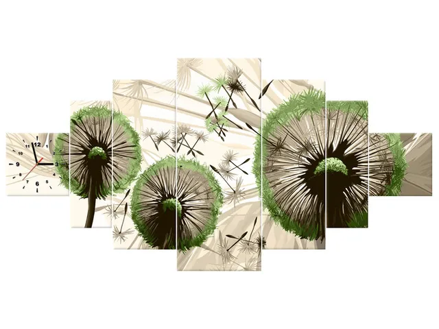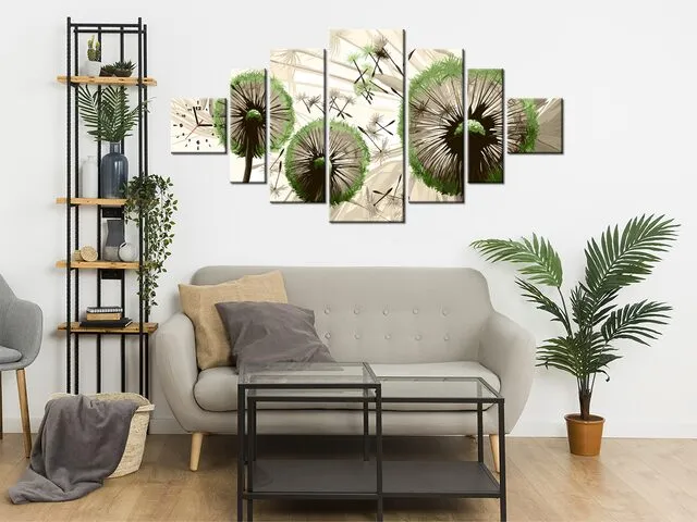 Úvod » Obrazy » Obrazy s hodinami » Obraz na stenu s hodinami Púpavy v zelenej