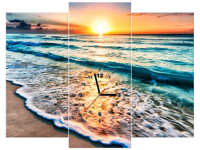 Úvod » Obrazy » Obrazy s hodinami » Obraz na stenu s hodinami Západ slnka v Cancune