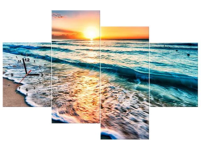 Úvod » Obrazy » Obrazy s hodinami » Obraz na stenu s hodinami Západ slnka v Cancune