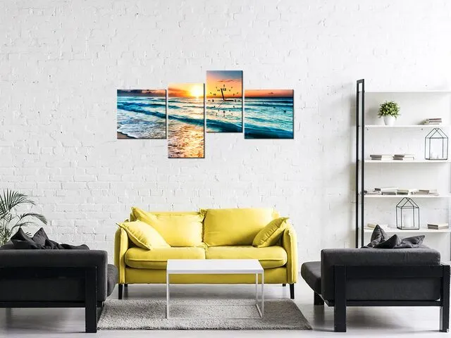 Úvod » Obrazy » Obrazy s hodinami » Obraz na stenu s hodinami Západ slnka v Cancune