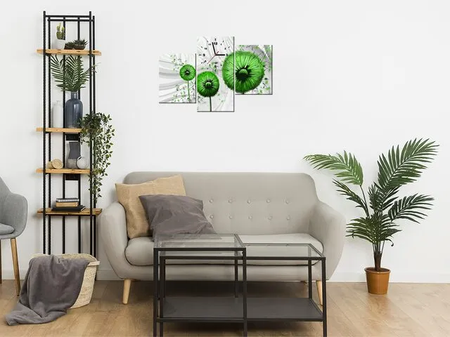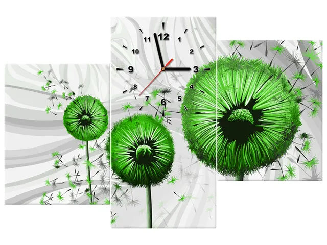 Úvod » Obrazy » Obrazy s hodinami » Obraz na stenu s hodinami Zelené púpavy 3