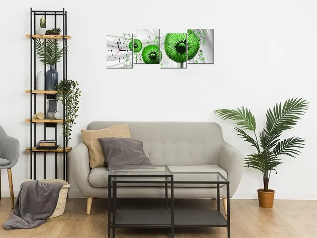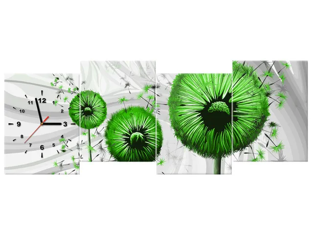 Úvod » Obrazy » Obrazy s hodinami » Obraz na stenu s hodinami Zelené púpavy 3
