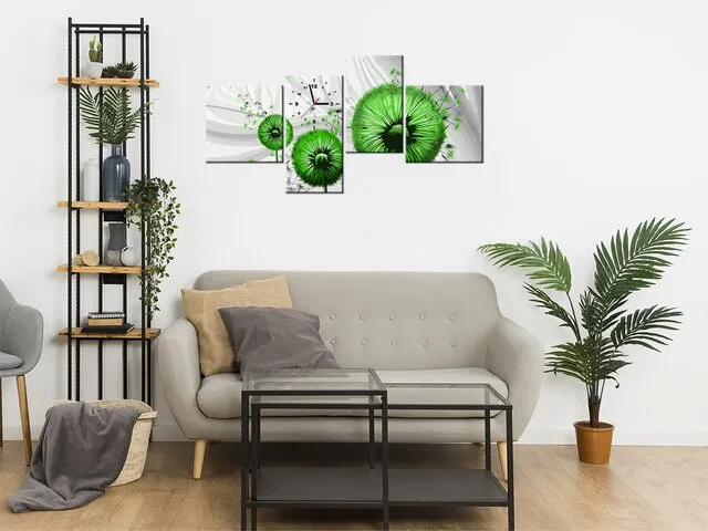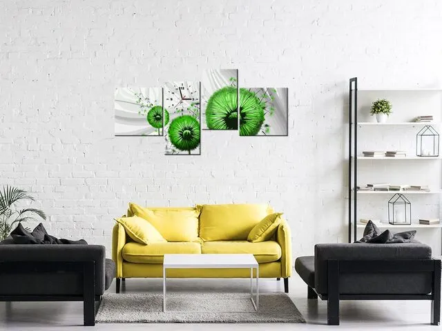 Úvod » Obrazy » Obrazy s hodinami » Obraz na stenu s hodinami Zelené púpavy 3
