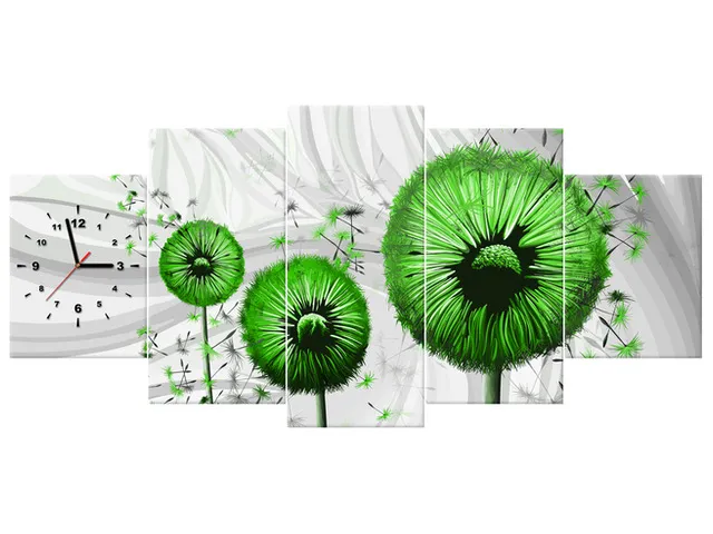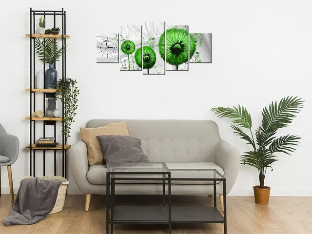 Úvod » Obrazy » Obrazy s hodinami » Obraz na stenu s hodinami Zelené púpavy 3