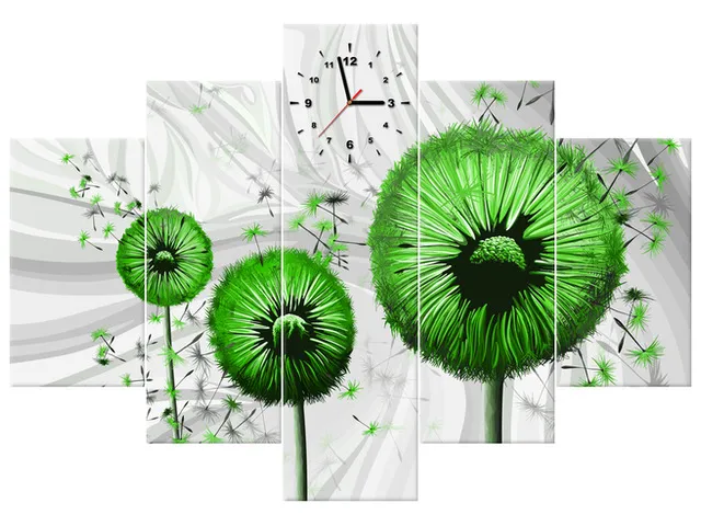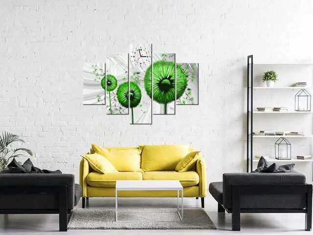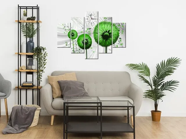 Úvod » Obrazy » Obrazy s hodinami » Obraz na stenu s hodinami Zelené púpavy 3
