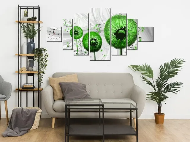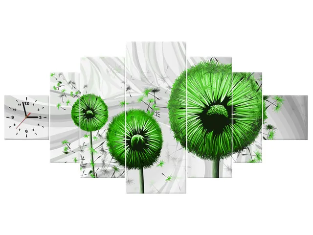 Úvod » Obrazy » Obrazy s hodinami » Obraz na stenu s hodinami Zelené púpavy 3
