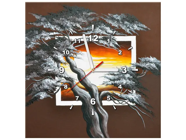 ZP4021A_3A Obraz prírody s hodinami Strom na pozadí zapadajúceho slnka |