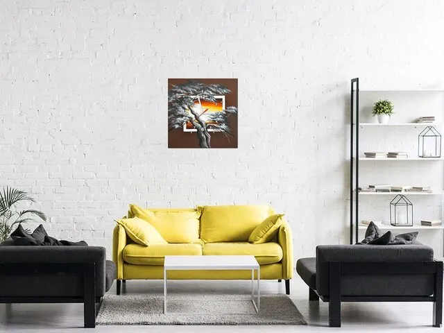 Úvod » Obrazy » Obrazy s hodinami » Obraz prírody s hodinami Strom na pozadí zapadajúceho slnka