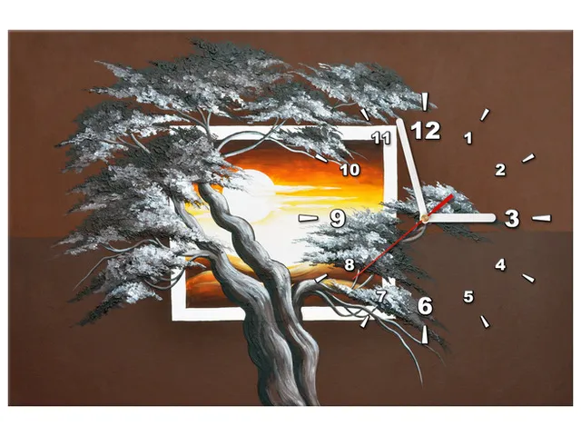 Barion Pixel Obraz prírody s hodinami Strom na pozadí zapadajúceho slnka