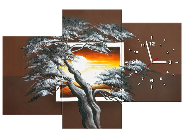 ZP4021A_3A Obraz prírody s hodinami Strom na pozadí zapadajúceho slnka |