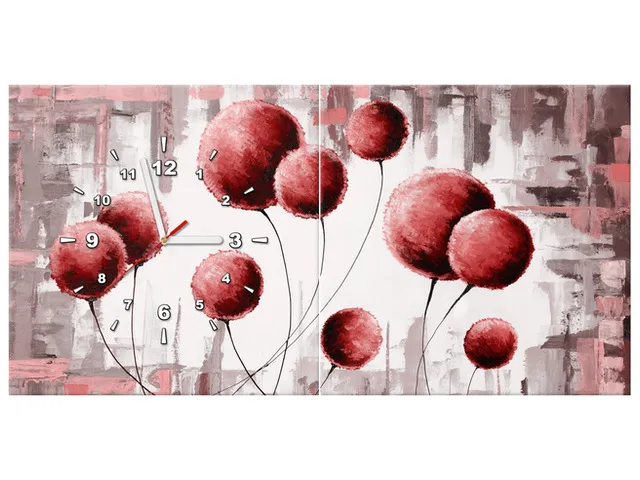Úvod » Obrazy » Obrazy s hodinami » Obraz s hodinami Abstraktné púpavy v červenej