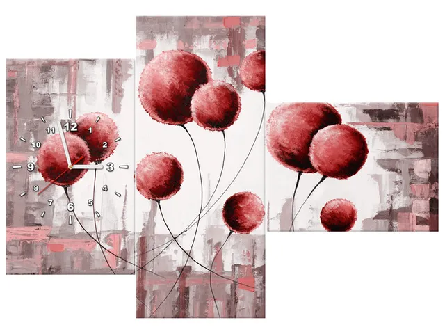 Úvod » Obrazy » Obrazy s hodinami » Obraz s hodinami Abstraktné púpavy v červenej