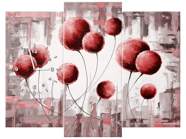 Úvod » Obrazy » Obrazy s hodinami » Obraz s hodinami Abstraktné púpavy v červenej