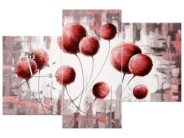 Úvod » Obrazy » Obrazy s hodinami » Obraz s hodinami Abstraktné púpavy v červenej