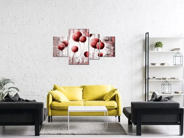 Úvod » Obrazy » Obrazy s hodinami » Obraz s hodinami Abstraktné púpavy v červenej