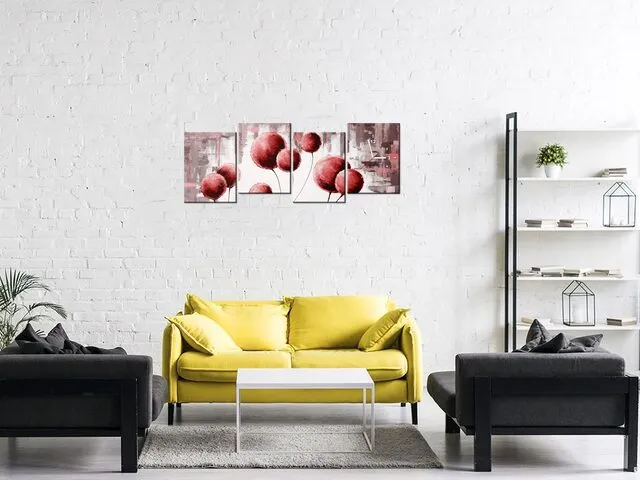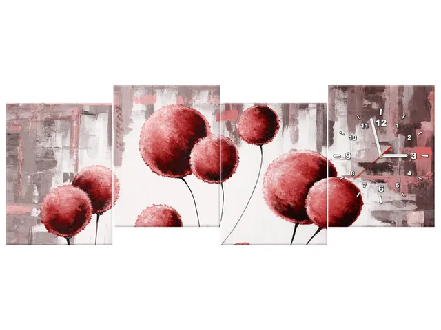 Úvod » Obrazy » Obrazy s hodinami » Obraz s hodinami Abstraktné púpavy v červenej