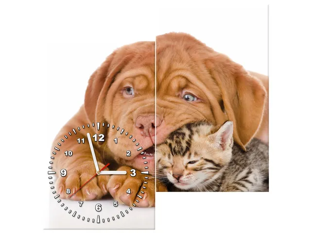 Úvod » Obrazy » Obrazy s hodinami » Obraz s hodinami Ako pes a mačka