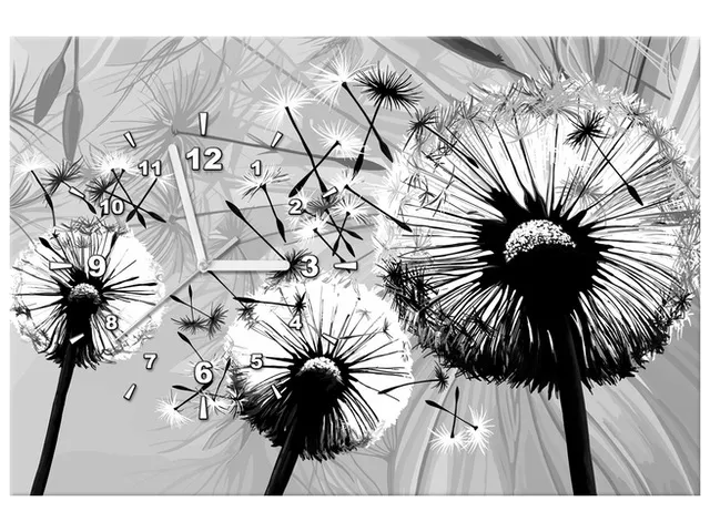 Úvod » Obrazy » Obrazy s hodinami » Obraz s hodinami Biele púpavy na sivom pozadí