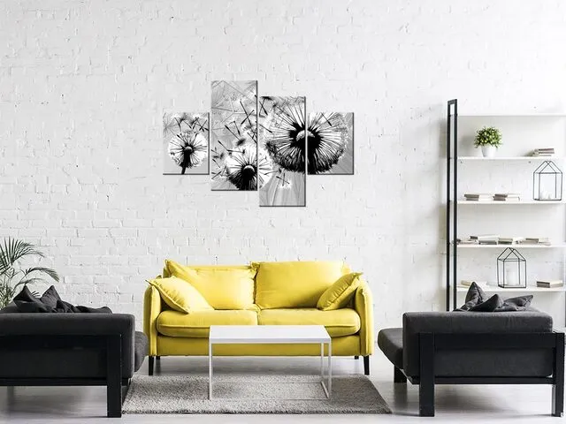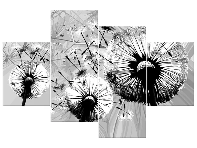 Úvod » Obrazy » Obrazy s hodinami » Obraz s hodinami Biele púpavy na sivom pozadí