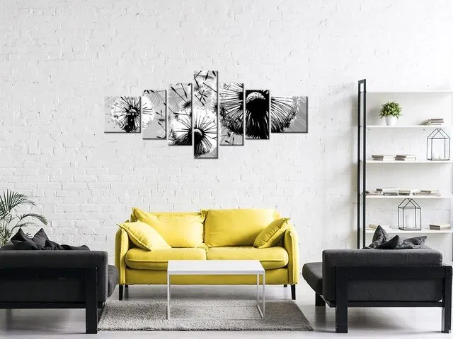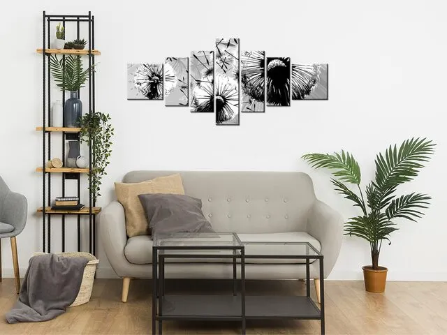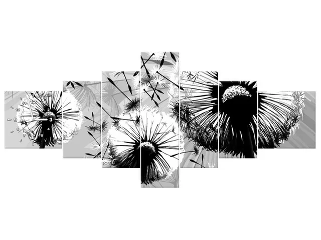 Úvod » Obrazy » Obrazy s hodinami » Obraz s hodinami Biele púpavy na sivom pozadí