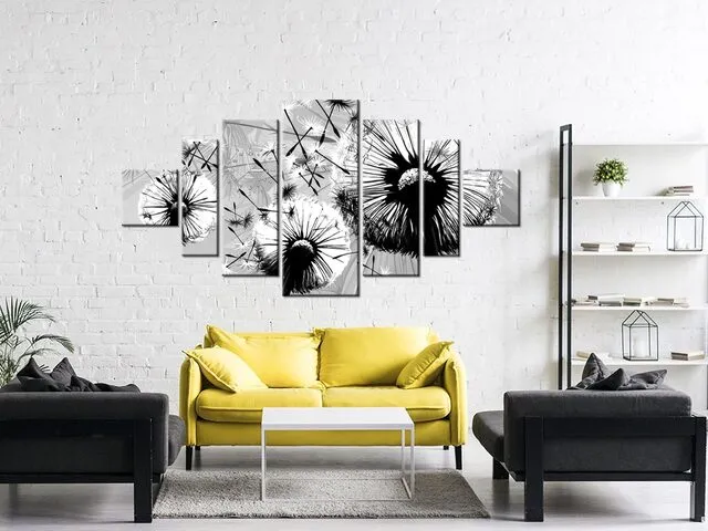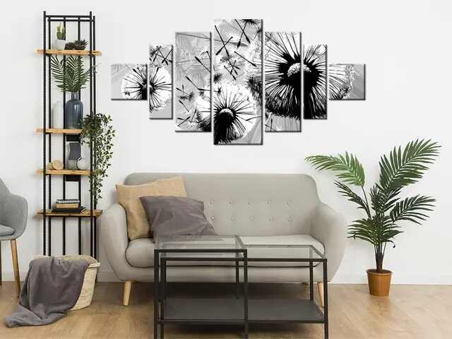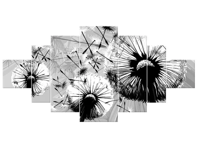 Úvod » Obrazy » Obrazy s hodinami » Obraz s hodinami Biele púpavy na sivom pozadí