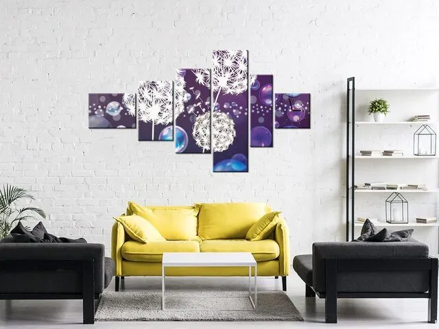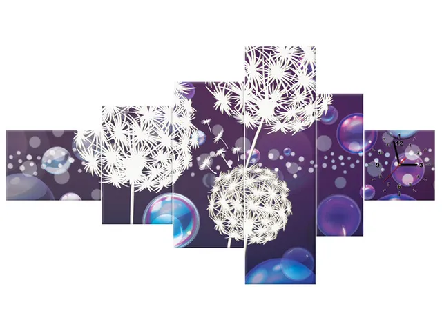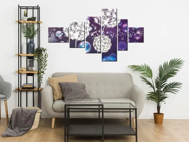 Úvod » Obrazy » Obrazy s hodinami » Obraz s hodinami Biele púpavy v bublinách