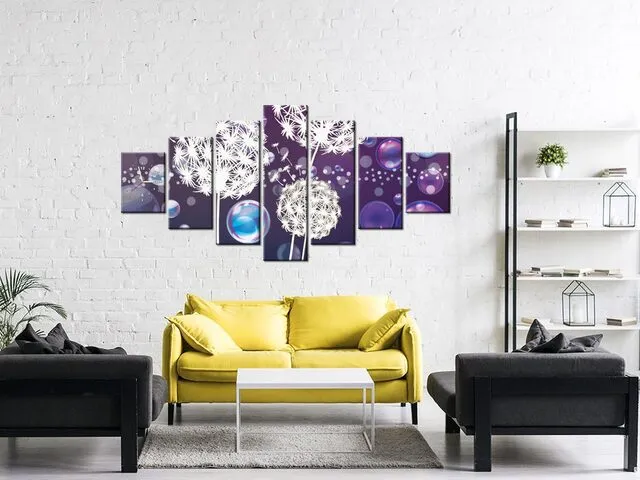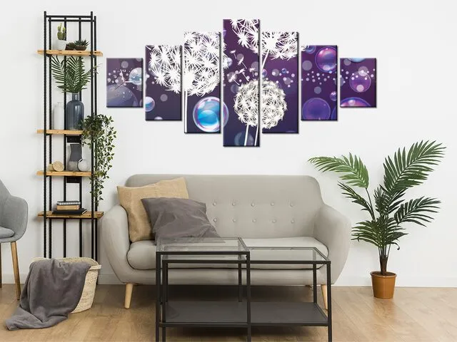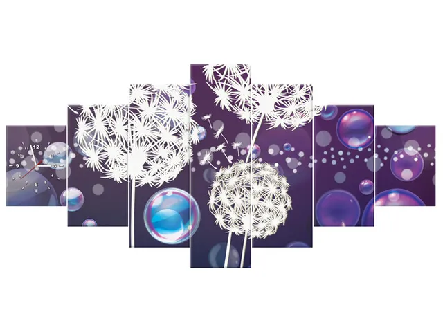 Úvod » Obrazy » Obrazy s hodinami » Obraz s hodinami Biele púpavy v bublinách