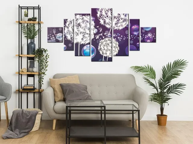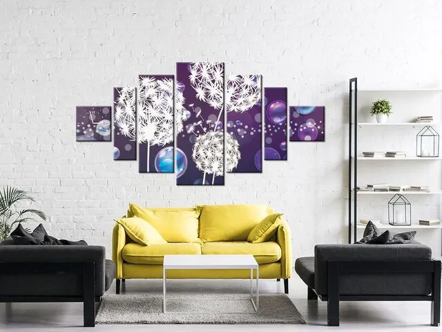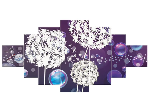 Úvod » Obrazy » Obrazy s hodinami » Obraz s hodinami Biele púpavy v bublinách