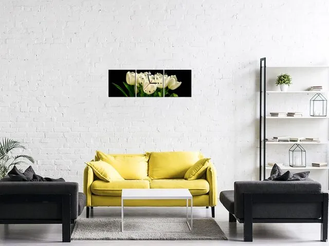 Barion Pixel Obraz s hodinami Biele tulipány - Mark Freeth